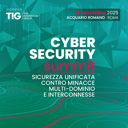 Cybersecurity Summit 2025. Con il patrocinio di AssoCyberCybersecurity Summit 2025: “Sicurezza unificata contro minacce multi-dominio e interconnesse”. Con il patrocinio di AssoCyber 19 novembre 2025 | Acquario Romano, Roma Giunto alla sua tredicesima edizione, il Cybersecurity Summit organizzato da TIG -The Innovation Group... |